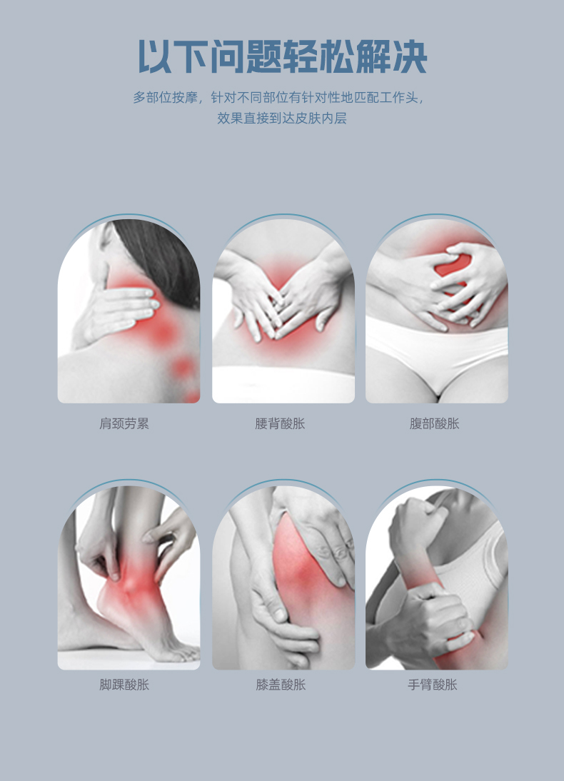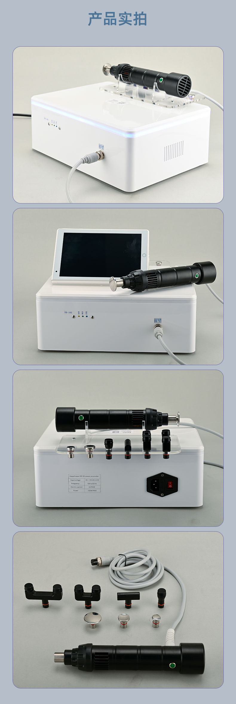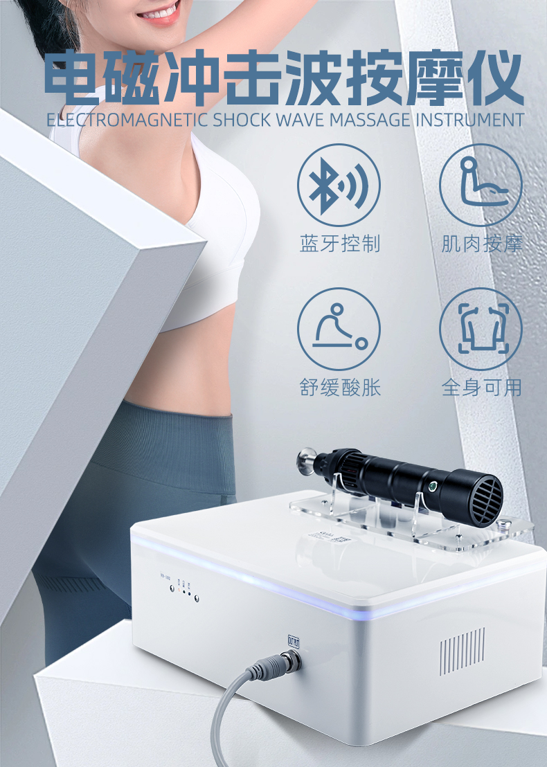 【產(chǎn)品名稱】電磁沖擊按摩儀VB102?!竟ぷ髟怼竣匐姶琶}沖技術(shù):通過產(chǎn)生特定頻率和強(qiáng)度的電磁脈沖,這些脈沖能夠穿透皮膚和肌肉組織,到達(dá)深層的肌肉和神經(jīng)。②能量聚焦:利用特殊的設(shè)計(jì)將電磁能量集中在較小的區(qū)域,形成類似點(diǎn)陣的作用點(diǎn),從而實(shí)現(xiàn)更精準(zhǔn)的刺激。③肌肉刺激:電磁脈沖作用于肌肉纖維,引起肌肉的收縮和放松。這種收縮和放松的過程類似于運(yùn)動時(shí)肌肉的活動,可以幫助緩解肌肉緊張、疲勞和痙攣。【主要特點(diǎn)】 ① 非侵入性調(diào)理:通過機(jī)械波的傳導(dǎo),直接作用于不適部位,無需手術(shù)或注射,避免了傳統(tǒng)方法的創(chuàng)傷和不適。② 高效調(diào)理:能夠提供高能量的沖擊波,深入組織,促進(jìn)血液循環(huán),加速組織修復(fù)和再生,從而達(dá)到調(diào)理效果。 ③多功能應(yīng)用:可用于多種不適的調(diào)理,如骨骼肌肉、關(guān)節(jié)、腱鞘等。 4、精準(zhǔn)定位:通過定位準(zhǔn)確,在接觸皮膚的部位涂抹耦合劑,便可進(jìn)行調(diào)理。