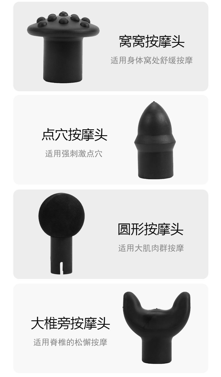 【按摩儀工作原理】全稱肌肉筋膜放松按摩儀,人體的肌肉被筋膜包裹,劇烈的運動會造成筋膜及肌肉的損傷,從而使人產(chǎn)生了肌肉僵持及酸脹感。筋膜槍能通過高頻振動穿透深層筋膜,來幫助肌肉軟組織放松,緩解脊椎周圍的肌肉僵硬,達到日常按摩的效果,而這樣的深層按摩效果是傳統(tǒng)手工按摩無法實現(xiàn)的。它還可以用來在人體運動前的熱身,增加肌肉韌性。運動后通過深度有力而精準的肌肉按摩,可以深度緩解身體酸脹、促進肌肉力量平衡,改善肌肉代謝功能及肌體運動異常狀態(tài)。有助于更快地恢復身體,促進肌肉修復,緩解乳酸。